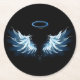 Porta-copo De Papel Redondo Asas Anjos Azuis Brilhantes em fundo preto