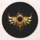 Asas mecânicas brilhantes, com engrenagens e faixa redonda de latão. Steampunk