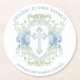 Porta-copo De Papel Redondo Batismo Cruz Crest Greenery Baby Boy