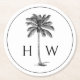 These coastal inspired monogrammed paper coasters feature a classic palm palmetto tree in black on a white background with a monogram that you can personalize with your choice of initials.