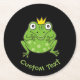 Cartoon sapo verde com ouro. Príncipe sapo. Cor de fundo personalizada. Texto personalizado.