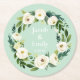 nomes personalizados data portas copos de casamento, recepção elegante de coquetel chic ao ar livre, faixa branca verde de menta aquática, nome clássico de casal tipografia floral, papel redondo botânico rústico-verde, flores de folhagem de janto de ensaio moderno, simples exclusividade formal de festa de noivado, celebração de aniversário minimalista fofo, noiva primavera de outono, casais personalizados outono de verão