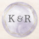 Porta copos de papel redondo Dourado e empoeirado com fundo de nuvem de aquarela e borda gráfica dupla em ouro em monogramas sans serif