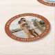 Adicione o toque final ao seu casamento com estas portas copos personalizadas divertidas. Perfeito como favores de casamento para todos os seus convidados. Personalize esses favores de casamento com sua foto favorita de casamento, sua nova foto e personalize com nome e data. Veja nossa coleção de casamento para combinar favores de casamento, presentes recém-casados e guardas de recem casados. COPYRIGHT © 2020 Judy Burrows, Black Dog Art - Todos Os Direitos Reservados. Porta copos de papel redondo de casamento do Terracotta Simples Moderno PersonalizadoFoto