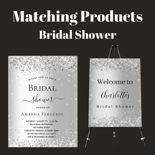 Para um chá de panela moderno, elegante e minimalista. Um fundo com aparência de prata falsa decorado com confete. Personalize e adicione uma data e um nome. Letras negras.