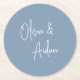 Porta-copo De Papel Redondo Dusty Blue | Casamento de Script Manuscrito Modern
