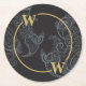 Porta-copo De Papel Redondo Elegante Monograma Paisley Preto Dourado