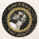 O preto elegante e o ouro party portas copos para personalizar com seus próprios fotografia e texto, perfeitos para comemorar ocasiões especiais como casamentos e noivados. Ouro ornamentado um quadro colorido cerca sua fotografia ajustada fora contra um fundo preto com as mancha coloridas ouro. Olha impressionante com fotografias preto e branco.