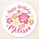 Porta-copo De Papel Redondo Feliz Aniversário Tropical Havaiana Flores de Hibi