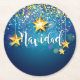 Porta copos de papel - Feliz Navidad em Fundo Azul com Estrelas Douradas - - Veja este design em pratos, guardanapos, portas copos e muito mais na minha loja.