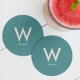 Suportes de papel para copos personalizados com uma grande monograma centralizada e nome associado. Tipografia minimalista limpa e simples. Totalmente personalizável.