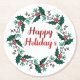 Porta-copo De Papel Redondo Happy Holiday's Wreath Paper Coaster