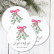 Estas portas copos de papel da festa de Natal são decoradas com uma maleta verde-aquarela, uma fita vermelha e uma tipografia de na moda que diz "Jingle and Mingle" Facilmente personalizável. Original Watercolor © Michele Davies.