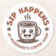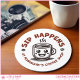 Promova seu negócio com esses porta-copos personalizáveis que apresentam uma ilustração encantadora de uma xícara de café sorridente, tipografia em negrito que diz “Sip Happens”, além de um espaço de texto personalizável onde você pode adicionar o nome da sua loja. Modifique o design adicionando seu próprio logotipo (ou use este logotipo como está) e o nome da sua empresa para criar produtos promocionais e de branding personalizados. Perfeito para proprietários de cafeterias, cafés ou bares de café.