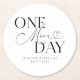 Porta copos de ensaio de casamento minimalista, com texto tipográfico que diz "mais um dia." O fundo é branco.