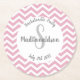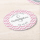 Porta-copo De Papel Redondo Monograma de festa com chevron rosa e branco