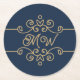 Porta-copo De Papel Redondo Monograma de Floreio Elegante Azul-Elegante Dourad
