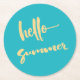 Porta-copo De Papel Redondo Olá, Verão Amarelo Azul, Script Moderno