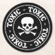 Tóxico - porta copos preta com rotulação e o crânio brancos.