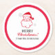 A porta copos de papel Red Santa Claus apresenta Papais noeis vermelhos risonhos dentro de uma borda redonda vermelha, e é perfeita ao receber convidados para o Natal. © Manhã 6