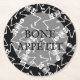 Skeletons sobre fundo preto e BONE APPÉTIT em letras quicas, essas portas copos redondas de papel pesado são divertidas para sua festa de Halloween ou decoração caseira. CORRESPONDENDO a itens na nossa loja.