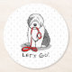 Porta-copo De Papel Redondo Vamos Engraçado! Sheepdog Inglês (Cinza 1)