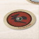 Uma renderização em 3d de um escudo Viking sobreposta a um papel antigo ou a uma imagem de fundo pergaminho. O escudo é decorado com um corvo preto (Corvus corax) pintado em couro vermelho. Adicione seu próprio texto. Os métodos e materiais utilizados na construção de escudos Viking variaram de local e de tempo. Esta reconstrução baseia-se em exemplos conhecidos. Os escudos nórdicos, em contraste com os feitos por outros grupos, eram frequentemente feitos de madeiras relativamente suaves, como poplar e pássaro. Intencional ou não, isso ajudou o escudo a absorver o sopro sem falhar. E, em vez de um pedaço sólido de madeira, foram acoplados plamentos horizontais - como indicam as cabeças de parafuso vistas na frente desse escudo - para evitar cuspir ao longo do grão. A fim de reduzir ainda mais a possibilidade de danos, a face do escudo foi coberta frequentemente por couro e foi acrescentada uma faixa de couro. Ambos absorvidos sopram, protegendo a madeira subjacente. O chefe de metal em forma de tigela no centro protegeu a mão do guerreiro.