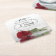 Este porta-copos de casamento é elegante, sofisticado e divertido! Apresenta uma foto de uma única rosa vermelha de caule longo deitada de lado refletida em uma poça de água. O texto diz "Por favor, não pegue meu drinque, estou dançando" escrito em letras de caligrafia moderna. Há espaço para o convidado escrever seu nome, bem como os nomes do casal e a data do casamento impressos na parte inferior. Ótimo souvenir para seus convidados e também uma maneira prática de informar a equipe de espera que não limpe os drinques ainda!