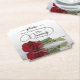 Esta porta copos de casamento é elegante, na moda, e divertida! Ele apresenta uma foto de uma rosa vermelha enraizada de solteiro que se encontra do lado dele, espelhada em uma piscina de água. O texto diz "Por favor, não tome minha bebida, estou dançando" escrito em letras modernas. Há espaço para os nomes do casal e da data do casamento no fundo. Memória de excelente para seus convidados e também uma maneira prática de deixar o funcionarios de espera saber não limpar as bebidas ainda!