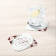 Esta porta copos de casamento é elegante, na moda, e divertida! Apresenta um belo design floral gráfico de bolho com rosas de aquarelas pintadas manualmente em tons de burgundy, vermelho e rosa-pincel, juntamente com folhas de eucalipto e folhagem de jardim. O texto está escrito em elegantes inscrições modernas e lê "Por favor, não tome minha bebida, estou dançando" com espaço para os nomes do casal e da data do casamento no final. Memória de excelente para seus convidados e também uma maneira prática de deixar o funcionarios de espera saber não limpar as bebidas ainda!