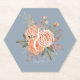 Porta-copo De Papel Rosas em Pêssego em Aquarela Azul Desbotado Rosa F