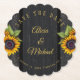 Casamento tradicional da Rússia salvará a porta copos de data com belos buquês de girassol em um fundo de madeira marrom-escura. ++++++ Ideal para um verão ou outono caia num elegante jardim ao ar livre, celeiro de fazenda ou casamento no quintal. Personalize-o com os nomes da noiva e do noivo, a data do casamento e o lugar!