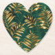 Seamless pattern of gold, jewelry, shiny fern branches and leaves on green, woodland, textured background. Golden fern.