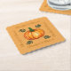 Add visual interest to your Thanksgiving table with this sweet rustic and whimsical orange pumpkin paper coaster. This coaster features an interesting and vintage elegant design: an orange hand-drawn watercolour pumpkin, decorated with winter green foliage in all four corners, sits at the centre while all four corners of the coaster reads, in vintage gold font, "Thankful & Blessed". A unique and charming coaster that has the potential to be a conversation starter.