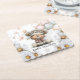 Whimsical Teddy Bear Baby Shower Design with Pastel Balloons and Daisies Baby Shower Paper Coaster