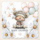 Celebrate the joy of new beginnings with this charming baby shower design featuring a cuddly teddy bear in a floral headband, nestled among cheerful daisies and pastel balloons. Soft colors and starry accents create a dreamy, gender-neutral theme perfect for invitations, party décor, and keepsakes. Customizable for any baby celebration, this sweet illustration brings warmth and whimsy to every detail.