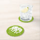 A white elephant on pea green coasters.