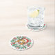 Esta porta copos de papel apresenta uma adorável pintura aquosa de uma prateleira que vestia Papais noeis cercada por uma coroa de Natal.