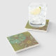 Porta-copo De Pedra Aqua e Flores Laranja Queimadas em Fundo Verde
