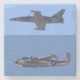 Uma porta copos de bebidas com uma foto de aviões de guerra incluindo um B-25 chamado Super Rabbit. O outro é um treinador de jato L-39 feito na Europa Oriental.