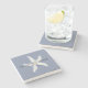 Porta-copo De Pedra Beach Blue White Starfish Quote