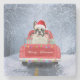 Porta-copo De Pedra Buldogue Francês em Neve sentado no Caminhão de Na
