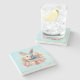 A stone coaster with a watercolor image. A white gray bunny rabbit surrounded by a garland of pink and peach roses. For bunny lovers and Easter themes and birthdays and showers.