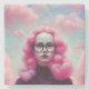 Uma pintura gerada pela IA de uma garota com cabelo cor-de-algodão doce rodeado por nuvens cor-de-rosa de algodão doce. Perfeito para um quarto de adolescente ou de menina adolescente.