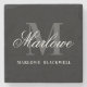 Na moda, Monograma Elegante Cinza Branca Negra Nome de Roteiro porta copos de pedra para sua nova casa ou quarto. Um presente personalizado e atencioso para o seu aniversário, dia de as mães ou nova festa de inauguração de casa.