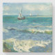 A paisagem nas proximidades de Les Saintes-Maries-de-la-Mer (1888) pelo artista poste-impressionista holandês Vincent Van Gogh. Arte original é uma pintura de capa de mar em óleo que mostra um barco em um oceano azul abstrato. Use as ferramentas de design para adicionar texto personalizado ou personalizar a imagem.