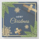 Porta-copo De Pedra Cartão de Natal Flocos de Neve Dourados, Feliz Nat