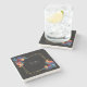 Adoramos cores brilhantes e designs ousadas, então queríamos algo divertido e caprichoso, mas ainda elegante o suficiente para um casamento. Esta porta copos de pedra de casamento tem uma abundância de flores coloridas e tipografia moderna num fundo negro para um sofisticado olhar floral - que ajustado num casamento de todo o ano.