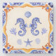 Um design vibrante de dois cavalos marinhos, inspirado pelo charme mediterrânico.