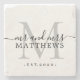 Suporte de pedra monocromático preto chic e moderno com o texto mr e mrs e seu nome de casados e ano de estabelecimento em elegante caligrafia de letra manuscrita preta com um monograma cinza prateado. Basta adicionar seu nome, monograma e ano estabelecido abaixo. Design elegante e presente de luxo perfeito para o casal recém-casado. Se precisar de ajuda ou de produtos correspondentes, entre em contato conosco através do nosso chat da loja. Estamos felizes em ajudá-lo a tornar seu casamento o dia mais lindo! Exclusivamente projetado para você pelo Happy Dolphin Studio.